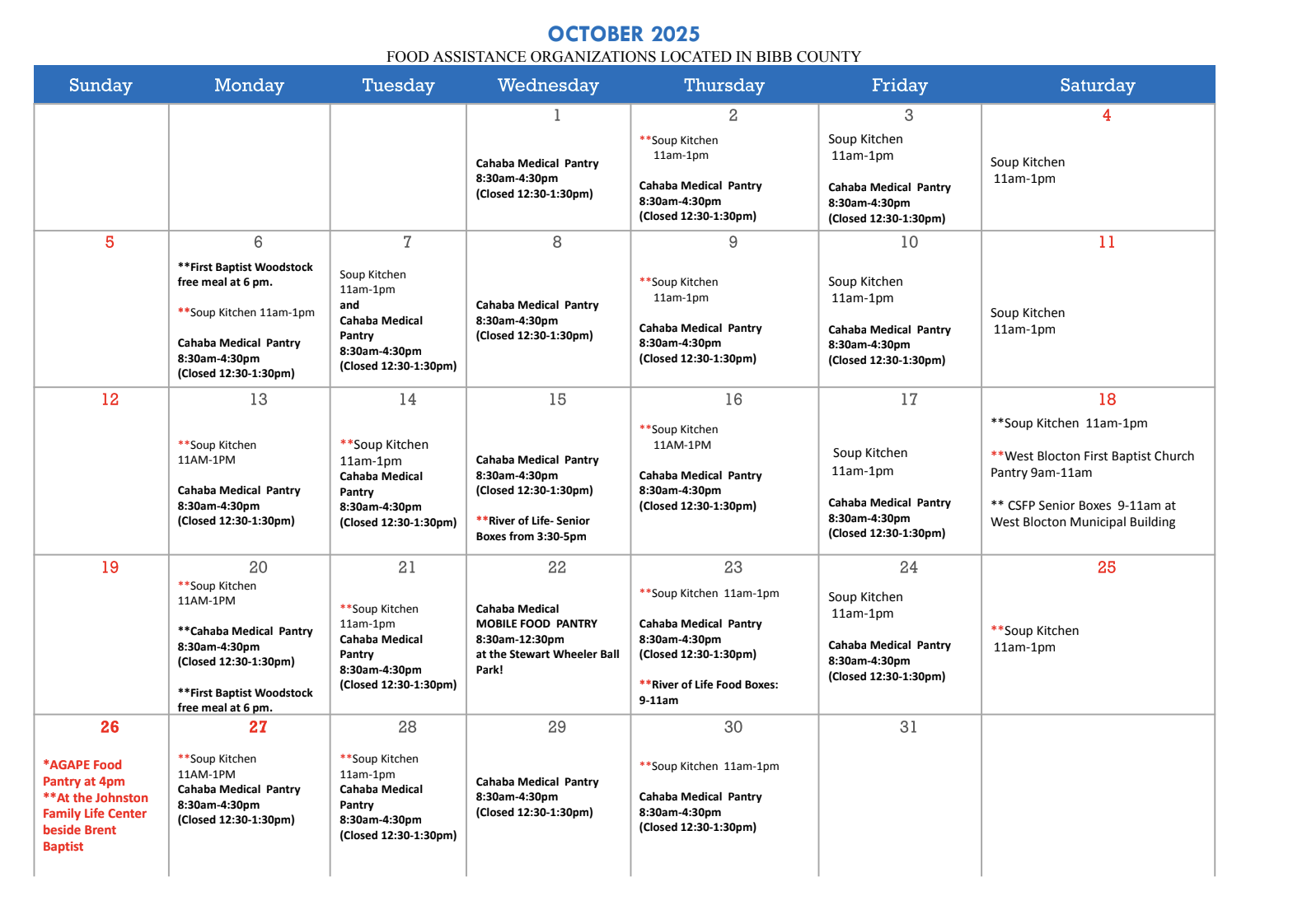 SCHEDULE FOR FOOD ASSISTANCE ORGANIZATIONS LOCATED IN BIBB COUNTY